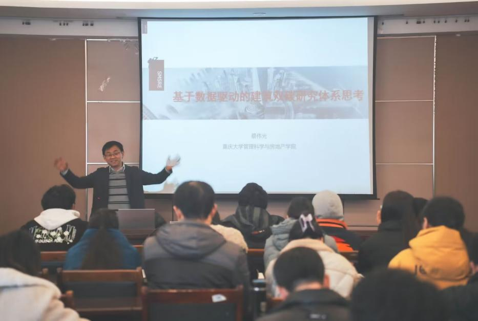 2024年1月3日上午,智能建造类专业建设研讨系列讲座在智能建造与管理学院如期开展。教授蔡伟光应邀为学院全体教师及学生代表开展以“建筑领域双碳战略”为主题的讲座。