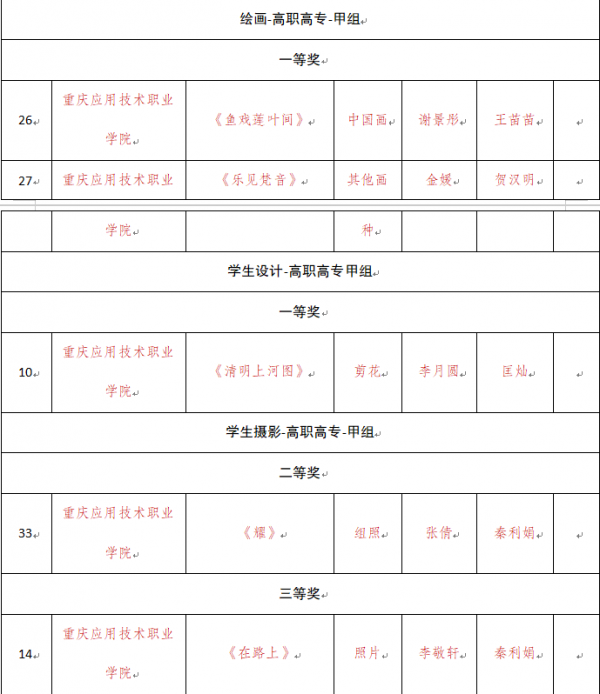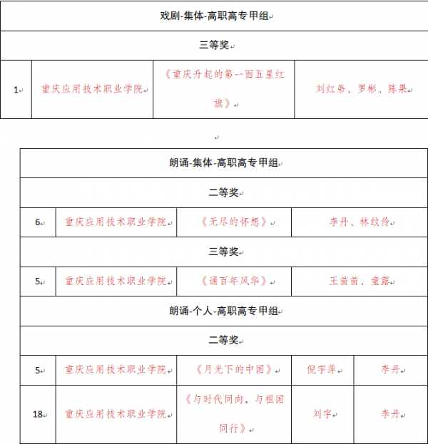 近日,重庆市教委下发《关于重庆市第七届大学生艺术展演活动获奖情况的通报》(渝教体卫艺〔2024〕10号),在重庆市第七届大学生艺术展演活动中,学校荣获一等奖4项,二等奖6项,三等奖6项;此外,学校荣获重庆第七届大学生艺术展演“优秀组织单位”。