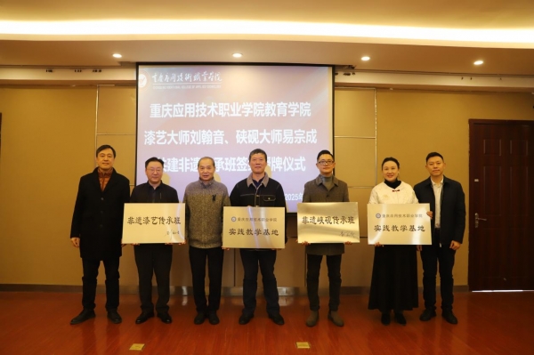 为深化美育教育与“三全育人”融合,推动非遗技艺活态传承,12月1日上午,重庆应用技术职业学院教育学院举行“漆艺大师刘翰音、硖砚大师易宗成共建非遗传承班签约授牌仪式”。这标志着合川硖砚、巴渝漆艺两大非遗项目正式“走进校园”,将通过系统化教学实现传统技艺的当代传承与创新发展。