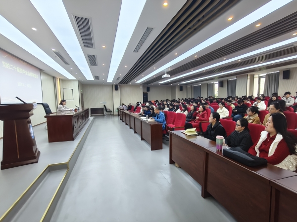 12月11日下午,学校在图书综合楼宣讲室举行学习贯彻党的二十届四中全会精神宣讲报告会(第一期),党委书记何菲作宣讲报告,全体副科及以上干部、师生代表参加报告会。