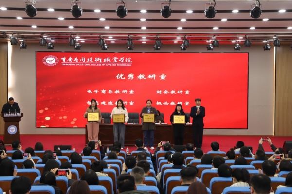 年度先进集体、年度优秀个人、年度优秀教研室等获奖单位及教师依次上台领奖,校领导分别为他们颁奖。