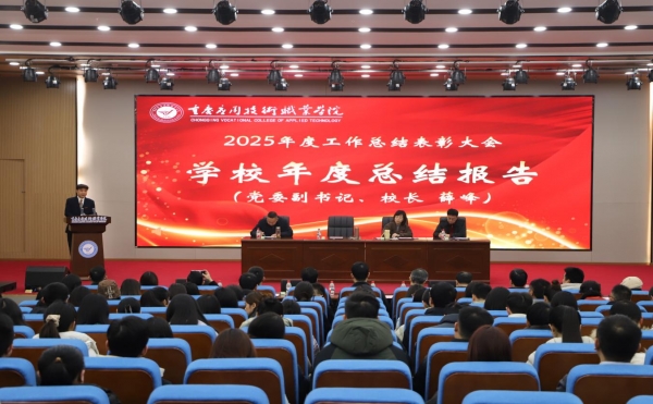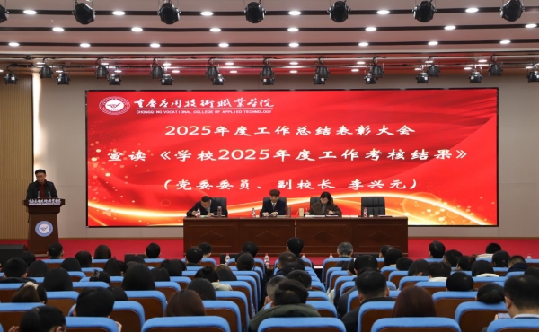党委副书记、校长薛峰代表学校领导班子向大会作2025年度工作总结报告。他指出,2025年是全面落实教育强国、教育强市建设规划纲要的关键之年,是学校“十四五”规划收官与“十五五”规划谋划的承启之年,一年来,在市委教育工委、市教委及举办方的正确领导下,全校教职工团结一心、努力拼搏,圆满完成各项年度任务,取得了令人瞩目的成绩。他从党建引领、宣传思想文化、教学科研、教师队伍建设、深化产教融合、校园管理、学生发展等方面,全面回顾了学校一年来的丰硕成果,并就2026年工作进行部署。