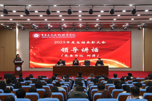 党委书记何菲代表领导班子对全体获奖集体和个人表示了祝贺,她在讲话中对全体教职工2025年工作给予充分肯定,也对学校2026年的建设和发展提出了希望和要求。她强调,2026年既是学校“十五五”规划的开局之年,也是学校办学能力评价开启新征程的一年,在新的一年里,希望大家以“强化内涵建设、提升服务能力、深化产教融合”为战略导向,紧扣职业教育“办学能力高水平、产教融合高质量”的新要求,以更高站位、更实举措、更优作风,顺利完成学校各项事业。